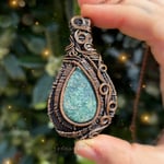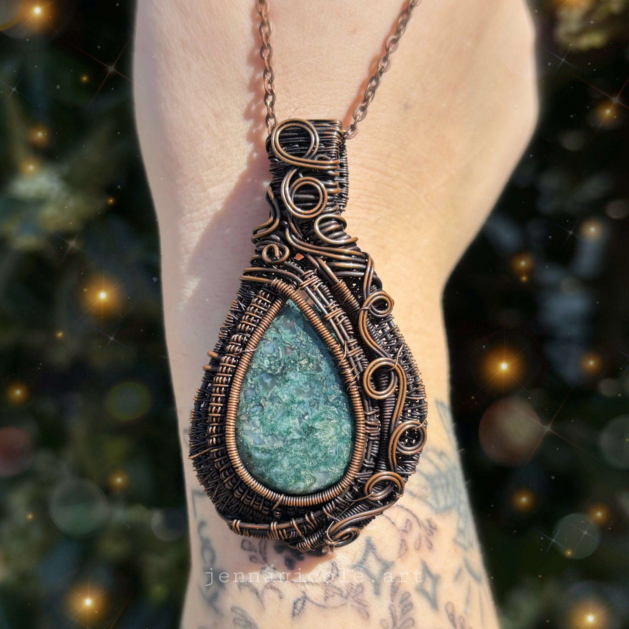 This pendant showcases a beautiful Moss Agate, wrapped in antiqued copper wire, and includes a copper chain necklace. Pendants paired with copper chains come with both a black cord and copper chain option, allowing you to choose your preferred look. Connected to the Heart Chakra, this amulet brings grounding energy and balance.